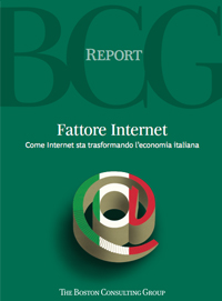 Fattore Internet - Come Internet sta trasformando l'economia italianaIl rapporto realizzato da Antonio Faraldi, Mauro Tardito e Marco Vos per The Boston Consulting Group (BCG) si pone l’obiettivo di fornire una valutazione dell’impatto che Internet produce sull’economia italiana, sia in termini attuali che prospettici e di analizzare quali siano gli elementi che possono rendere ancora più incisiva tale influenza nel prossimo futuro. Lo studio è stato commissionato da Google a BCG.