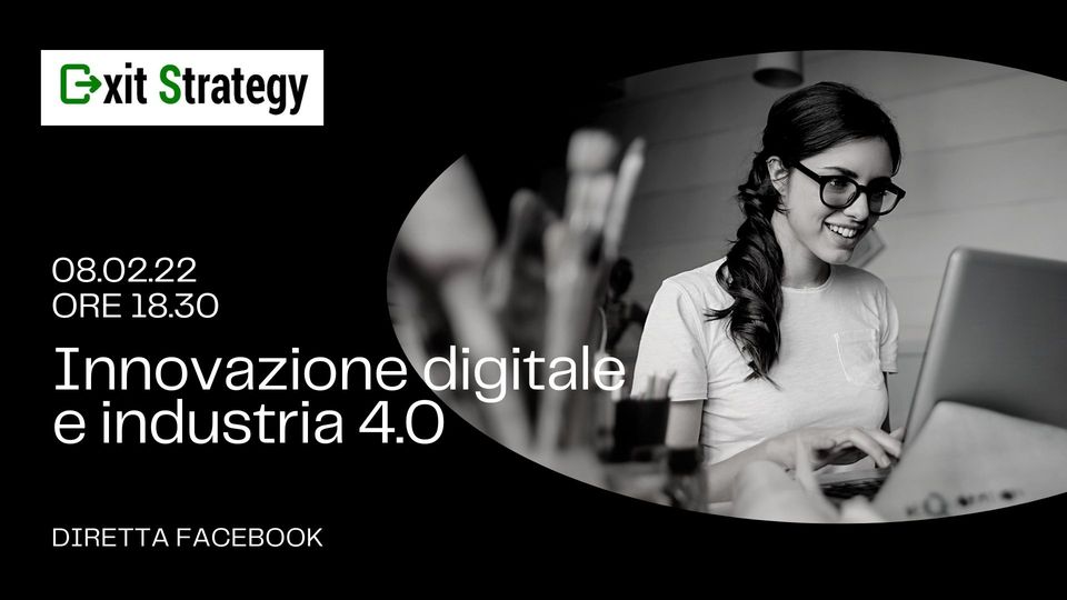 Martedì 8 febbraio 2022 in diretta Live su Facebook dalle ore 18.30 alle 19.30 il nuovo evento di Exit Strategy dal titolo "Innovazione digitale e industria 4.0". Questa trasformazione per le imprese rappresenta una sfida ricca di opportunità ma anche di insidie.
