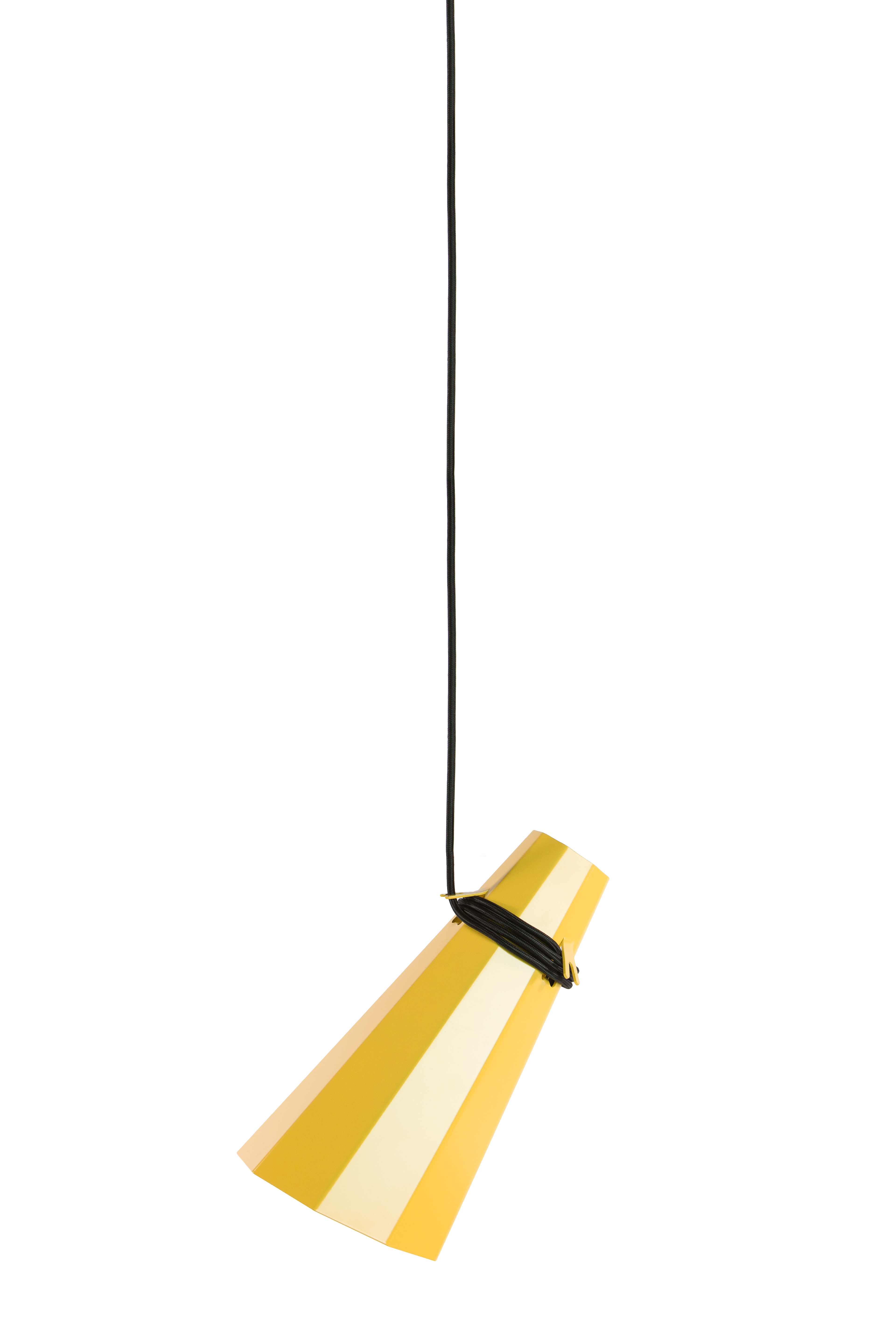 Poligono a nove facce estruso e rastremato in alluminio piegato, questa lampada a sospensione è regolabile in altezza semplicemente avvolgendo il filo intorno alla forma metallica.