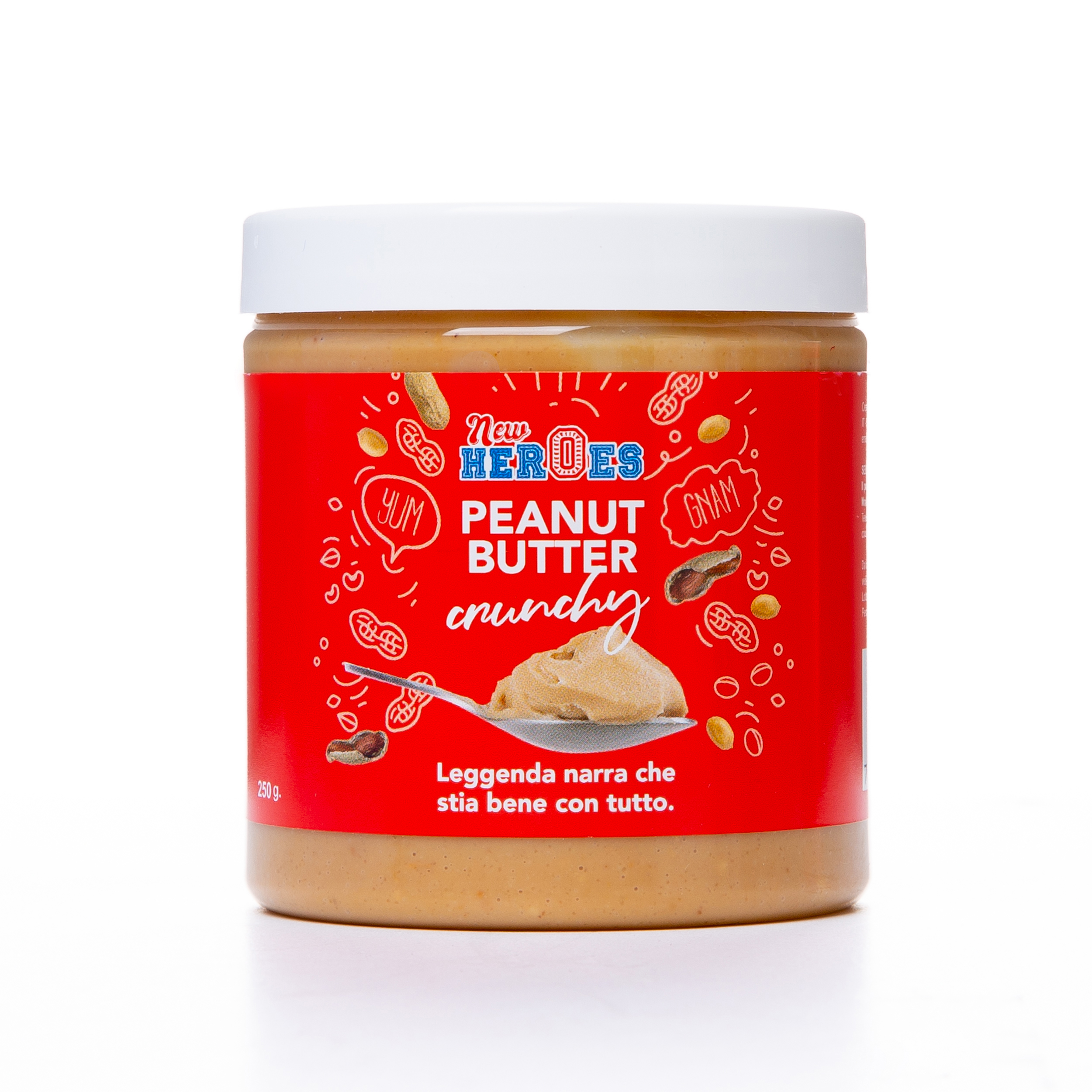 New Heroes Peanut Butter Crunchy è la nuova crema al burro d'arachidi marchiata American Uncle con veri e propri pezzetti croccanti di arachidi. Un prodotto studiato ed elaborato dallo Zio insieme ai suoi fidati collaboratori che si unisce alla vasta collezione di creme spalmabili New Heroes by American Uncle.