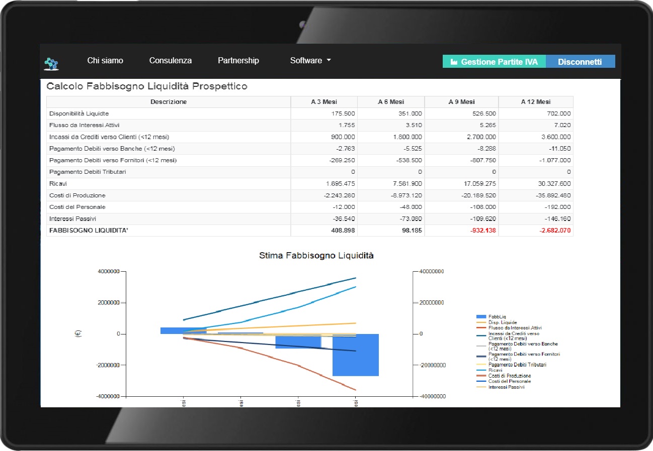 SinAction è un progetto promosso e portato avanti da un Network che, grazie alle esperienze pluriennali e alle competenze che lo caratterizzano, si propone come servizio di consulenza per le imprese avanzato e digitale. La piattaforma web di SinAction per la valutazione d'impresa nasce per dare un supporto strategico per la consulenza. Facile e sicura! La piattaforma web di SinAction ti permette di stimare il fabbisogno di liquidità per la tua azienda e di definire il perimetro delle tue esigenze. L'analisi consente di stimare l'eventuale esigenza di liquidità per mantenere in equilibrio la struttura finanziaria dell'impresa.