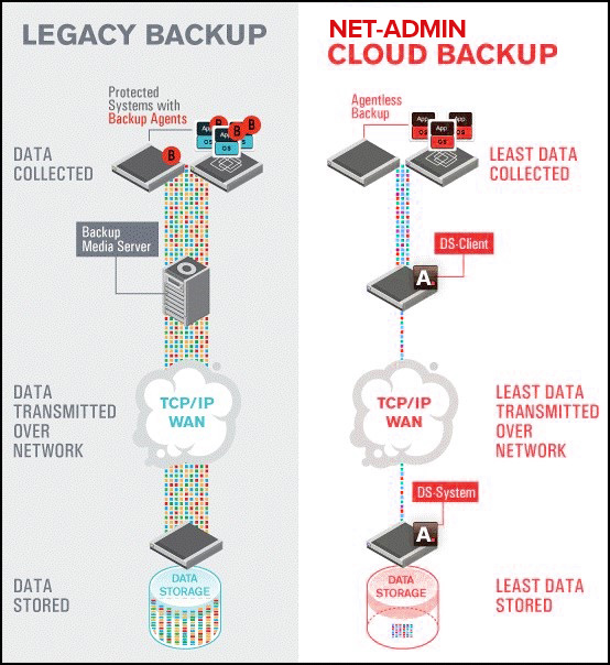 Net Admin offre un servizio di Cloud Backup che consente il “salvataggio consistente” di qualsiasi dato, database o applicazione informatica. E’ così possibile avere un servizio di memorizzazione fuori dalla propria infrastruttura, riducendo, e quasi annullando, il rischio di perdita dei dati, con la certezza di non aver archivi su nastri magnetici, NAS economici o dischi USB che, se non gestiti perfettamente, portano spesso a problemi durante le operazioni di ripristino o disaster recovery. In questo modo si possono quindi realizzare politiche di conservazione dei dati che non sarebbe possibile ottenere con un normale servizio di backup online.