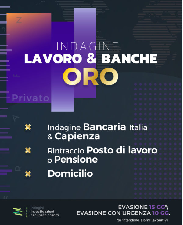Indagine Bancaria Italia con Capienza, Rintraccio Posto di lavoro, Pensione, Domicilio.